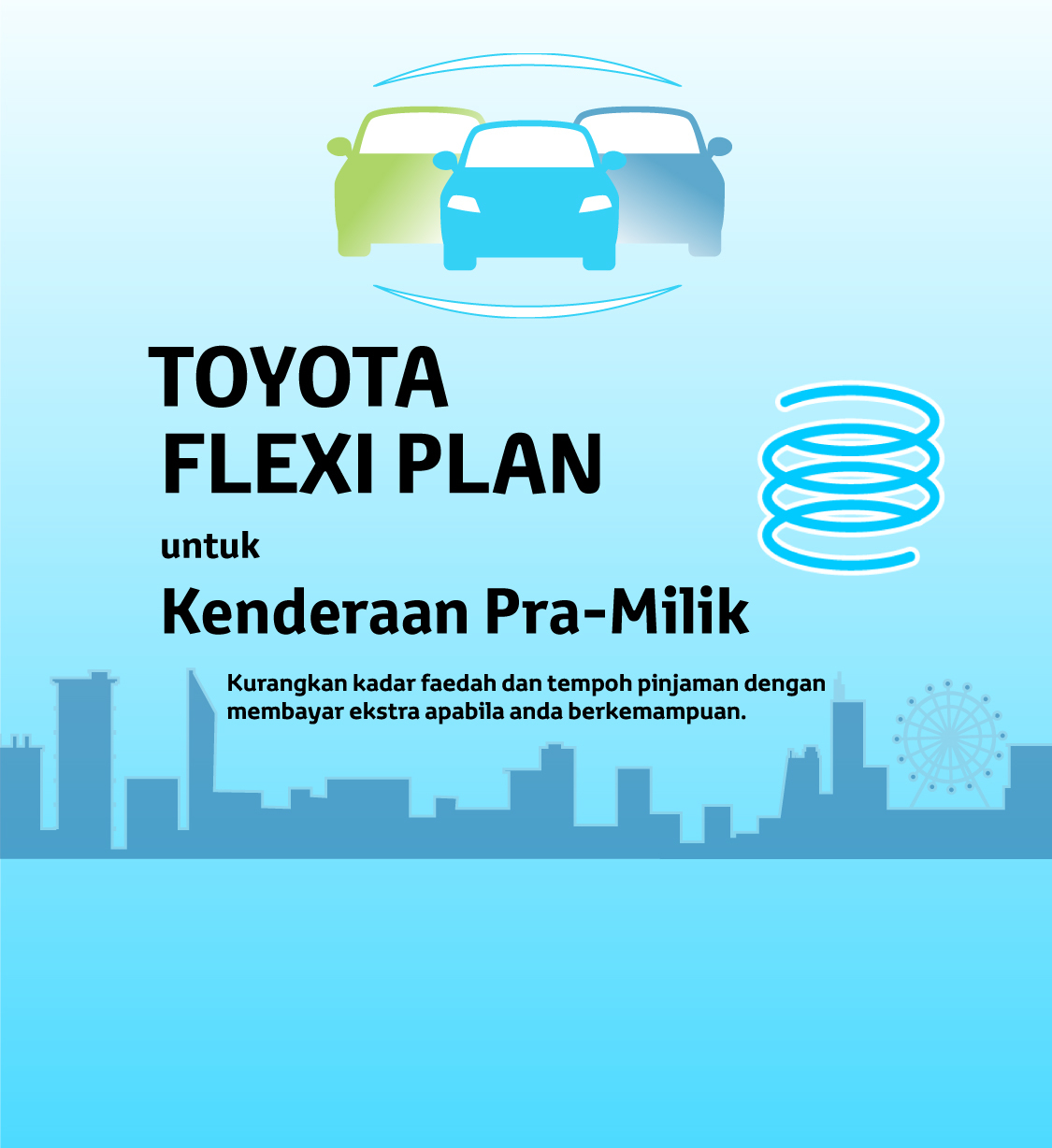 Miliki kebebasan untuk mengawal pinjaman anda sepenuhnya! Toyota Flexi Plan ialah cara terbaik untuk memiliki kenderaan pra-milik Toyota / Lexus, anda boleh mengurangkan jumlah faedah yang dibayar dan tempoh pinjaman dengan membayar tambahan apabila anda mampu membelinya. Bermakna, membayar lebih sedikit dalam jangka masa panjang dan menyelesaikan pinjaman anda dengan cepat!